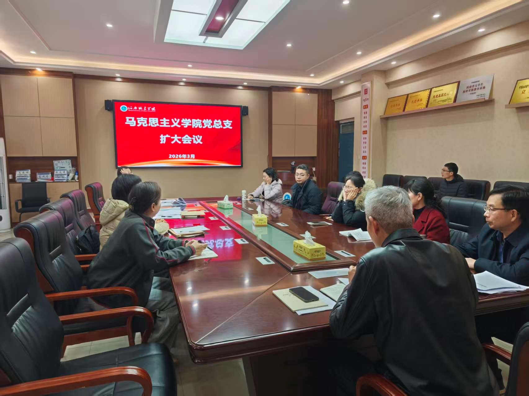 3月7日,马克思主义学院党总支(扩大)会议在一号楼423会议室召开,院党总支书记陈振国主持会议,院党总支委员、领导班子成员及全体党员教师参加会议。